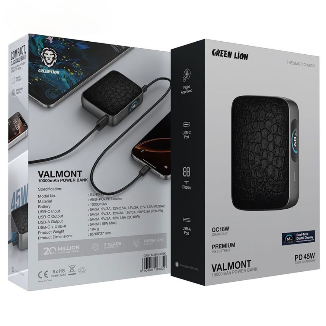 پاوربانک ۱۰۰۰۰ میلی آمپر مدل Valmont گرین لاین